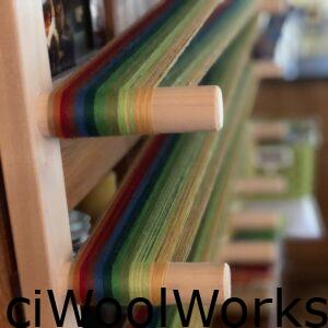 Om te kunnen weven heb je ook draden voor de inslag -breedte draden-nodig. Hiervoor gebruiken we een  een weefschuit met spoel. Mijn favoriet is de Louet Flying Dutchman schuit.
